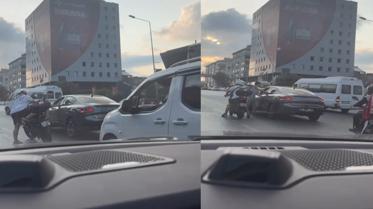 Şişli'de trafikte bir sürücünün kendisini sıkıştırdığını iddia ettiği başka bir sürücüye yumrukla saldırdığı anlar kameraya yansıdı.