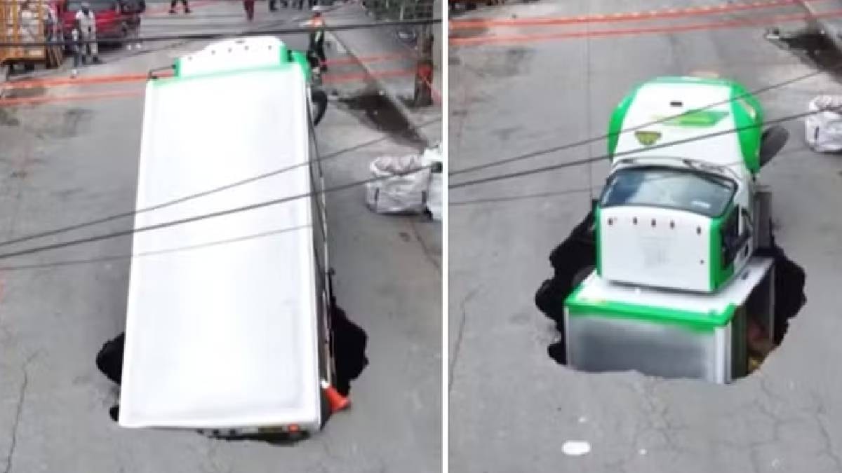Meksika’nın başkenti Mexico City’de, cadde üzerinde aniden çöken yol büyük bir kazaya neden oldu. Cumartesi günü kentin en kalabalık bölgelerinden Iztapalapa’da meydana gelen olayda, bir soda dağıtım kamyonu yolun ortasında açılan dev çukura gömüldü.