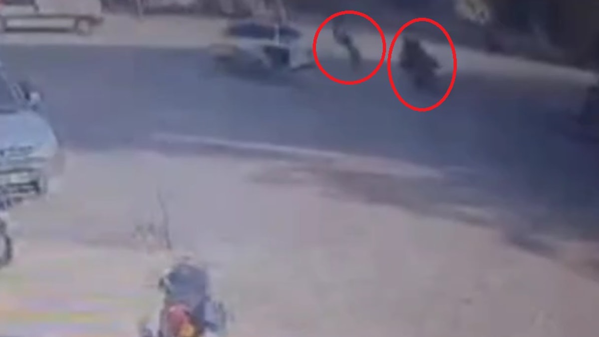 Hatay’ın Payas ilçesinde, otomobille çarpışan motosikletin sürücüsü savrularak yolda yürüyen bir çifte çarptı. Kazada 4 kişi yaralandı. O anlar güvenlik kamerasına yansıdı.