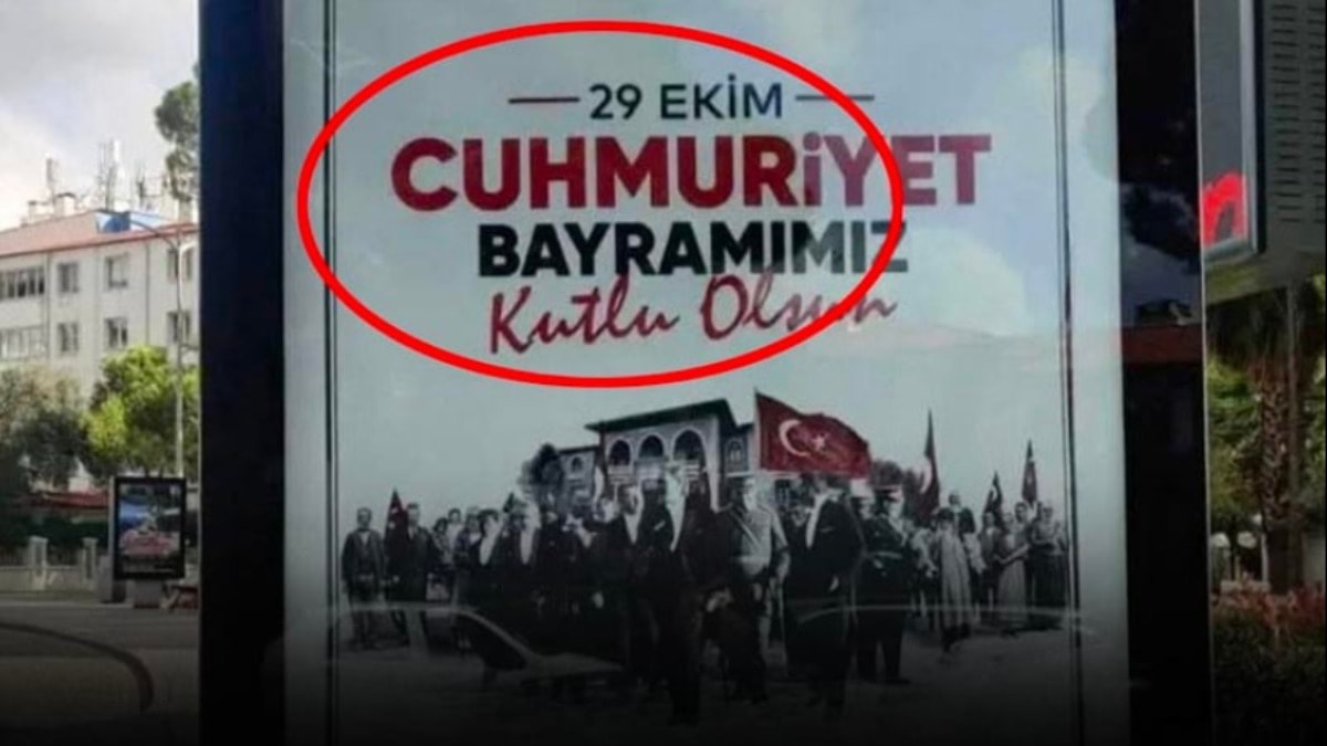 Cumhuriyet Bayramı yaklaşırken Muğla’da dikkat çeken bir olay yaşandı. Muğla Valiliği tarafından kentin çeşitli noktalarına asılan 29 Ekim afişlerinde “Cumhuriyet” kelimesinin “Cuhmuriyet” olarak yanlış yazılması sosyal medyada ve kentte tepki topladı