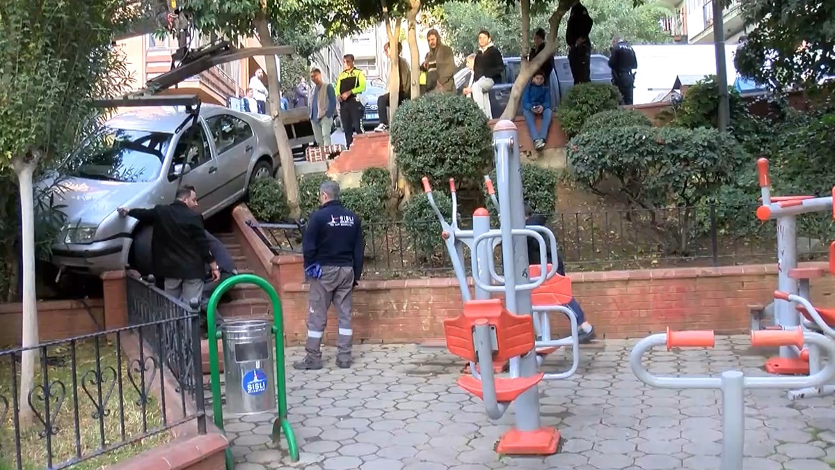 İstanbul'da sürücüsünün kontrolünden çıkan otomobil yokuştan kayarak çocuk parkına girdi. Olayda şans eseri ölen ya da yaralanan olmadı.