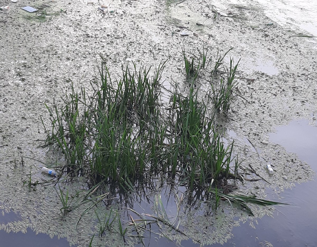 Su seviyesinin düşmesine bağlı olarak nehir yatağında kum adacıkları oluştu, çöpler gün yüzüne çıktı ve yüzeyi yosunlarla kaplandı.