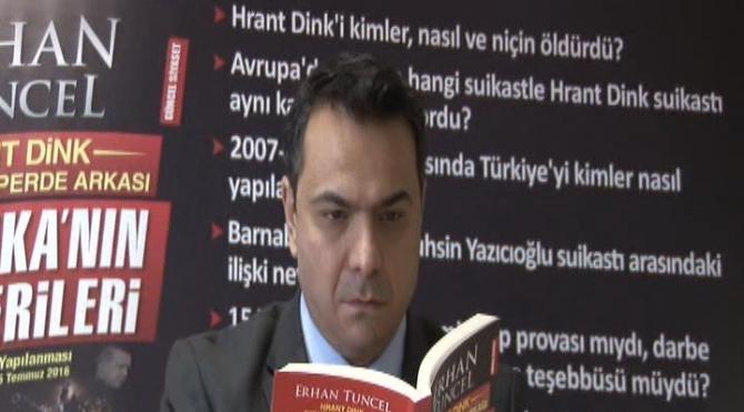 Serpil KIRKESER Yaşar KAÇMAZ / İSTANBUL, (DHA) "Hrant Dink Suikasti Davası"nın tutuksuz sanığı Erhan Tuncel, “Amerika'nın Yeniçerileri" isimli kitabıyla ilgili basın toplantısı düzenledi. Eyüp'deki yayın evinde konuşan Tuncel, kitabını neden yazdığını, konusunun neler olduğunu ayrıntılarıyla anlattı.