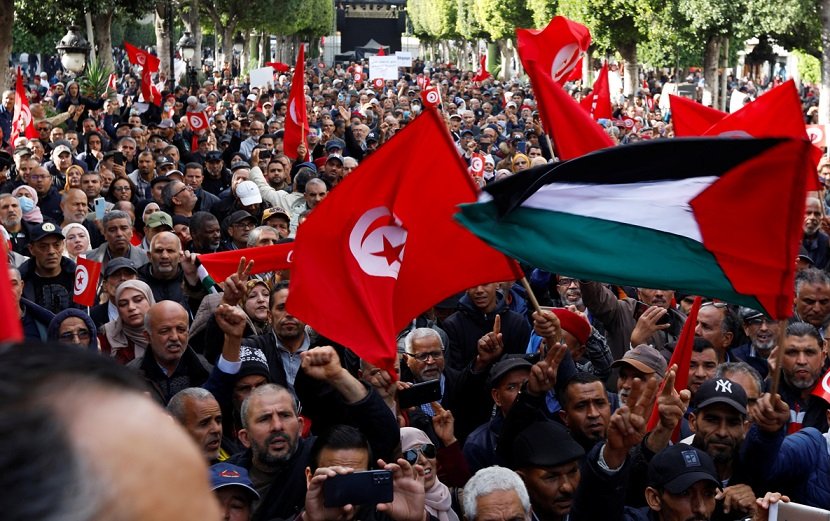 Tunus’ta muhalefetin çatı oluşumu Ulusal Kurtuluş Cephesi, “demokrasiye dönüş talebiyle” gösteri düzenledi.