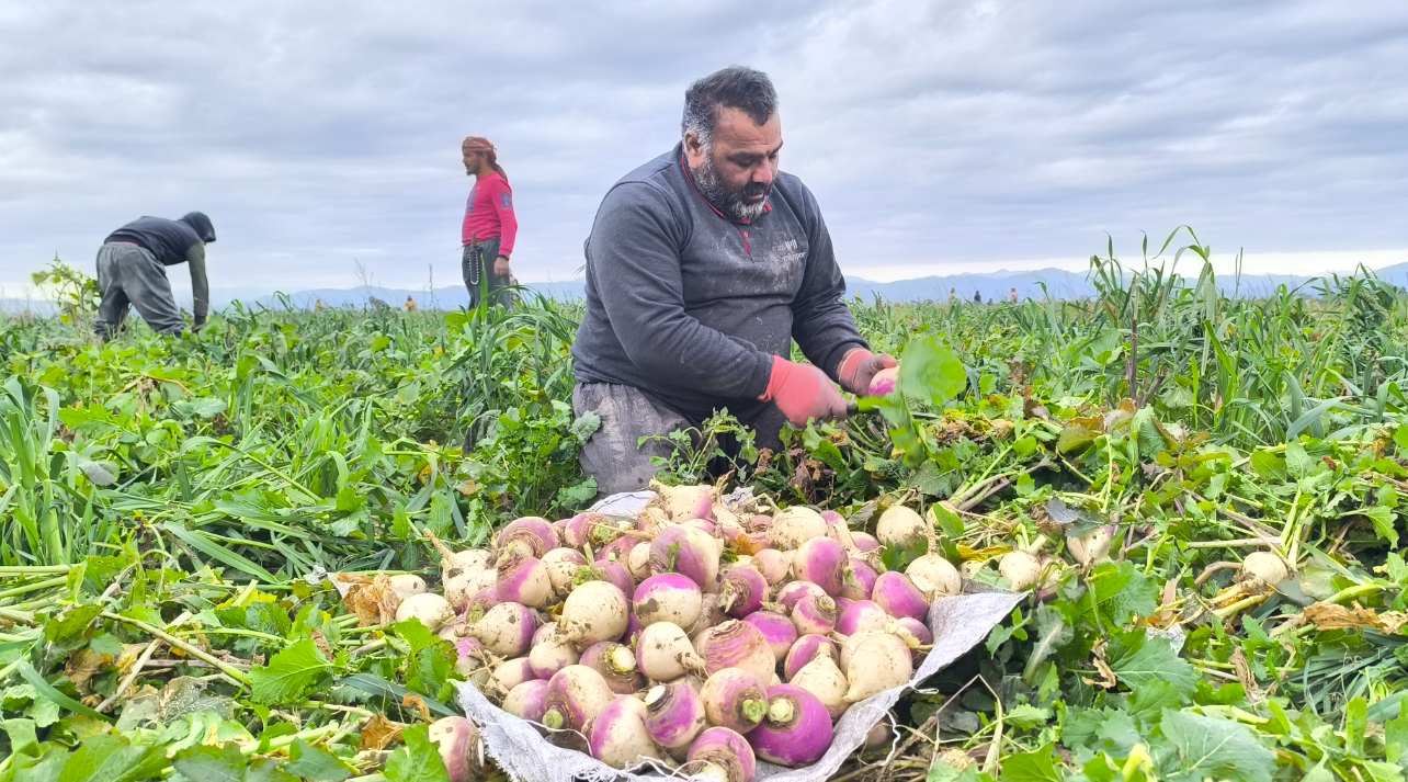 Osmaniye'nin Kadirli ilçesinde en iyi çeşitlerden biri olan şalgam turbun kilosu tarlada 30 kuruşa kadar düştü. Geçen yıl kilosu 6-7, yaklaşık bir ay önce ise 2-3 liradan satılan turp fiyatındaki düşüş üreticiyi mağdur etti.