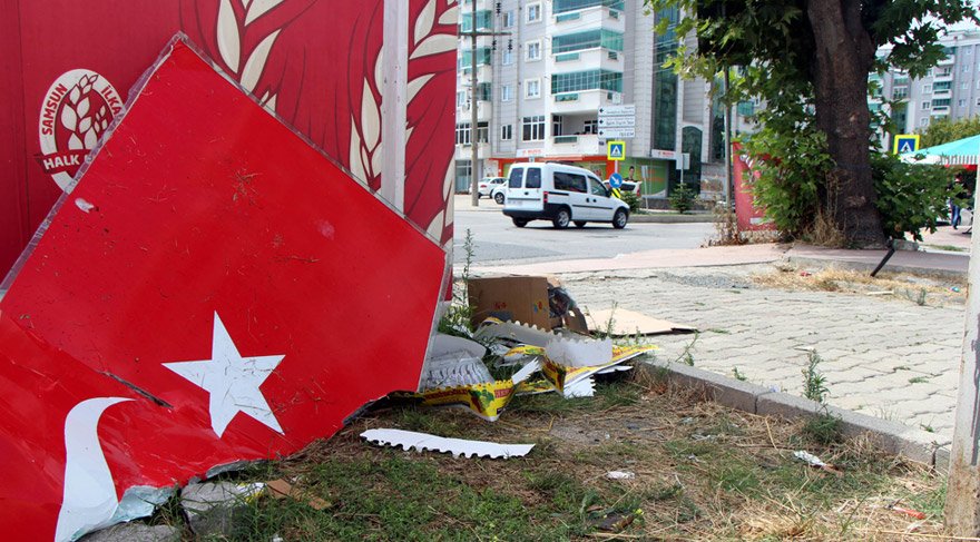 Samsun'da kimliği belirsiz kişiler tarafından cam üzerine giydirilmiş ve kırık olan Türk bayrağı yol kenarında bulunan bir alana atıldı.
