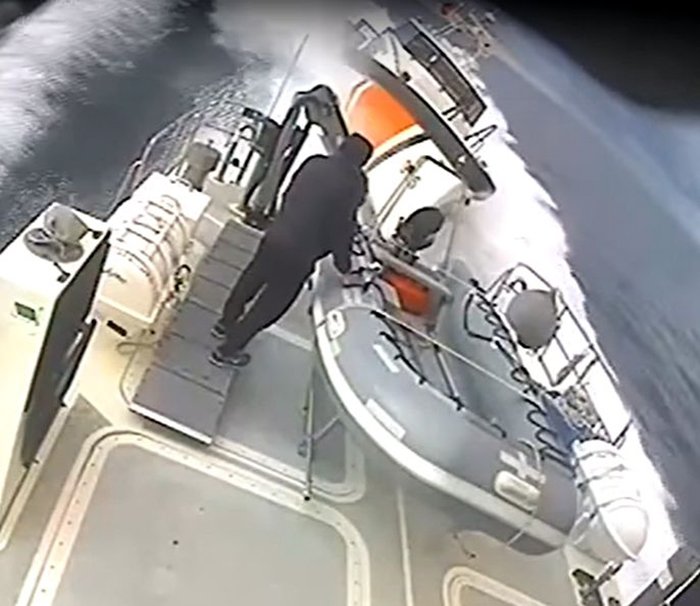 Türk botunun yarım metre yaklaştığı Yunan botundaki üç askerden ikisi hemen içeri girdi. Biri ise Türk botunun iyice yaklaşması üzerine panikleyerek botun ön tarafına doğru ilerlemeye çalıştı.