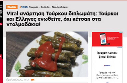 YUNANLILARA KETÇAPLI YAPRAK SARMASI İLE SESLENDİ