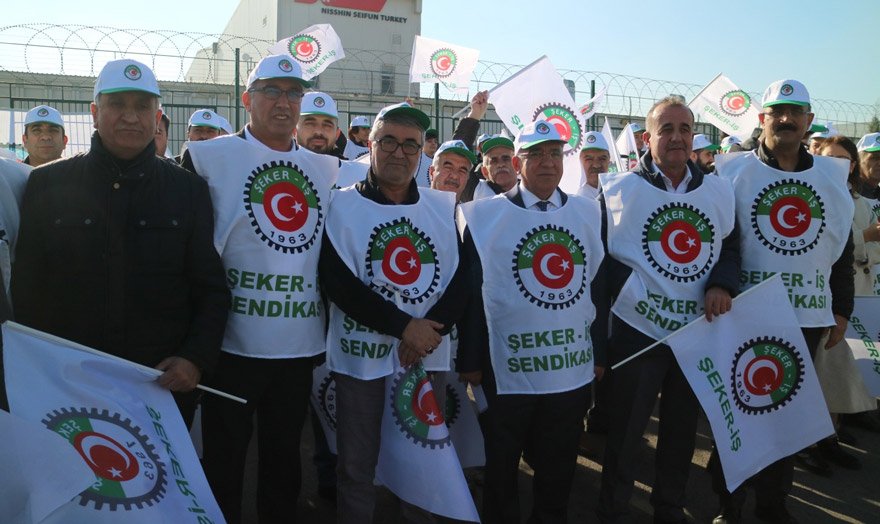 Şeker-İş Başkanı İsa Gök, Türk-Japon ortaklı fabrikanın önünde bir grup işçiyle eylem yapıp açıklamalarda bulundu. Fabrikada çalışan 103 işçiden 55’ini Şeker-İş üyesi yaparak örgütlenmeyi tamamladıklarını ve Çalışma Bakanlığı’ndan resmi yetkiyi aldıklarını belirten Başkan Gök, işverenin yasanın boşluklarından yararlanıp ‘sudan sebeplerle’ itiraz davası açarak sendikal örgütlenmenin önünde engel oluşturmaya çalıştığını söyledi. Başkan Gök, şu açıklamalarda bulundu: