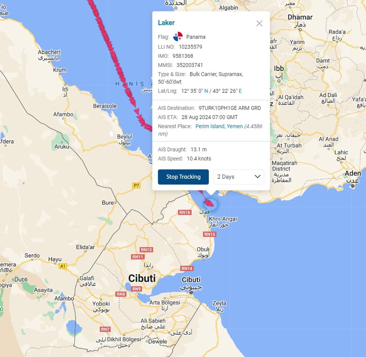 Ulaştırma ve Altyapı Bakanlığı Denizcilik Genel Müdürlüğü'nün sosyal medya hesabından, Kızıldeniz'den Hindistan'a gitmekte olan Panama bayraklı Laker gemisindeki Türk kaptanın kalp krizi şüphesiyle tıbbi tahliyesine karar verildiği açıklandı.