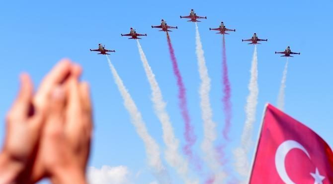 Sahilde oluşturulan izleme noktası dışında birçok alanda gösteriyi takip eden Antalyalılar, heyecanlı anlar yaşadı. Akrobasi timi, 7 uçakla yarım saat boyunca izleyenlere benzersiz bir gösteri sergiledi. Antalya semalarını ay yıldızlı Türk bayrağının rengiyle süsleyen Türk Yıldızları, binlerce kişi tarafından ilgiyle izlendi. Sahilde gösteriyi izleyen Antalyalılar, uçakların yaptığı zor hareketleri ve kalp figürünü dakikalarca alkışladı.