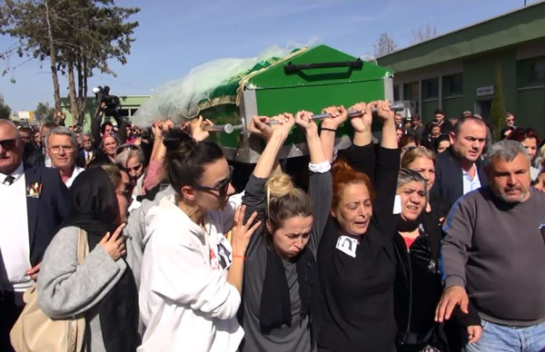 Cenazeye Türkan Sarıkaya’nın sözlüsü Erkan da katıldı. Üzerine duvak konulan talihsiz Türkan Sarıkaya’nın tabutu kadınlar tarafından omuzlanıp götürülürken, cenazeye katılanlar alkış tuttu. Cenaze namazı kılındığı sırada Türkan Sarıkaya’nın sözlüsü Erkan gözyaşlarına hakim olamadı. Sarıkaya’nın cenazesi Buruk Mezarlığı’nda toprağa verildi.