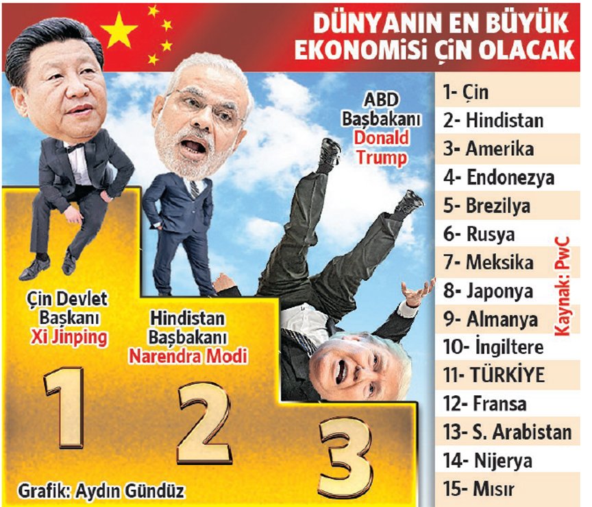 Rapora göre Çin, ABD’yi en büyük ekonomi olarak geride bıraktı bile ve 2030 yılından önce dünyanın en büyük ekonomisi olabilir. 2050 yılına kadar Hindistan da ABD’yi geride bırakarak ikinci sıraya yükselebilir. Endonezya ise Japonya ve Almanya gibi ülkeleri geride bırakarak dördüncü sıraya ilerleyebilir.