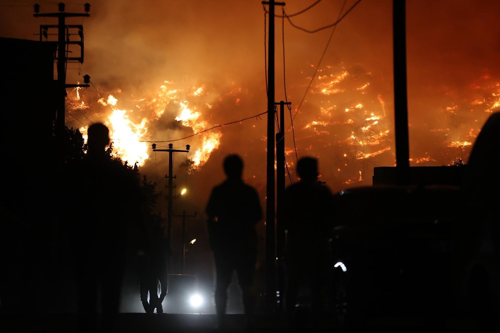 Bu sırada vatandaşlar, rüzgarın etkisiyle büyüyerek üzerlerine doğru yönelen alevlerden kaçtı.