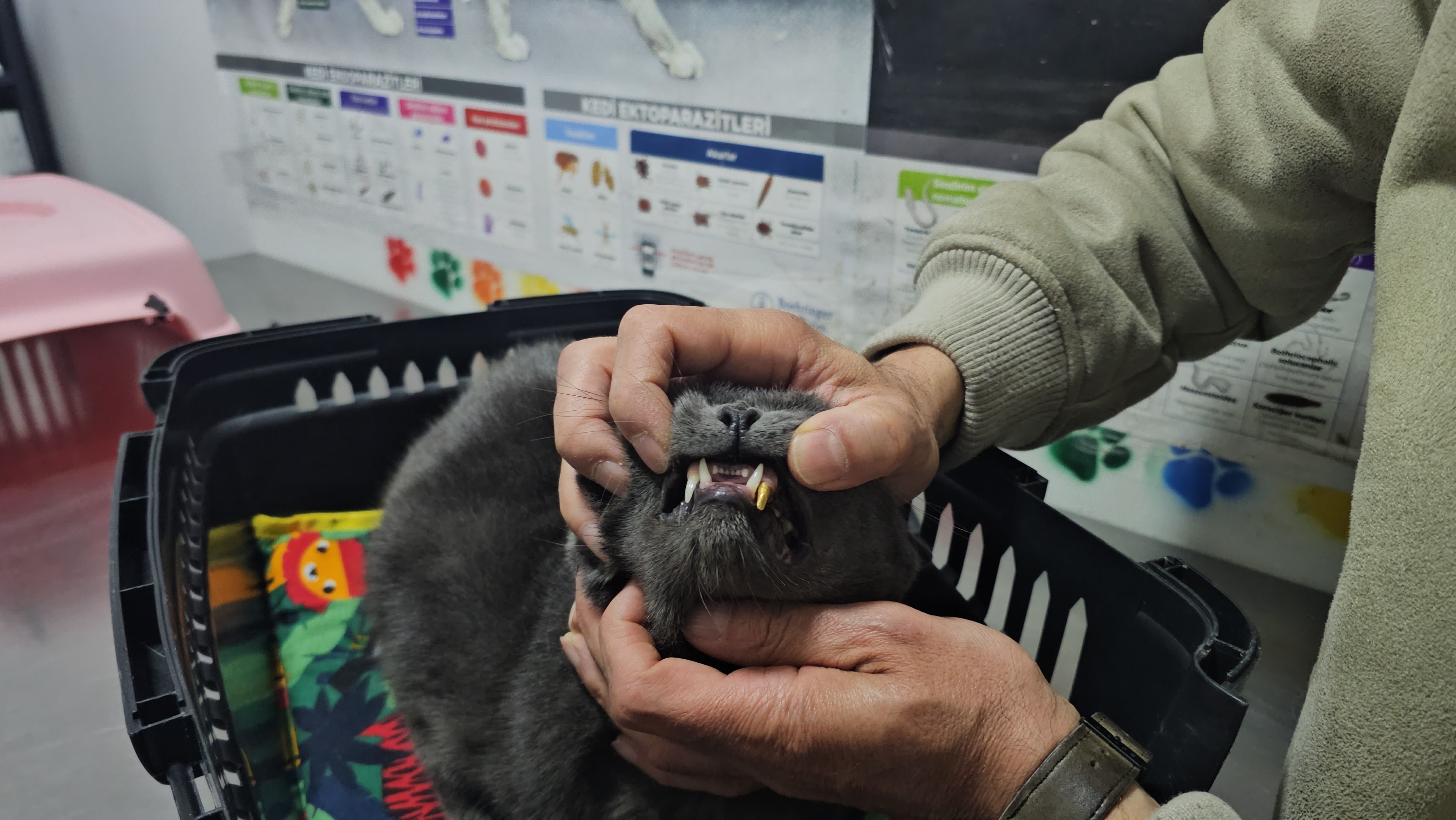 Veteriner kliniğinde çalışan Neslihan Uzun’un kedisinin dişi kırıldı.