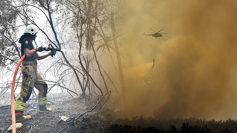 Ekipler, yangını kontrol altına almak için havadan ve karadan müdahale ediyor.