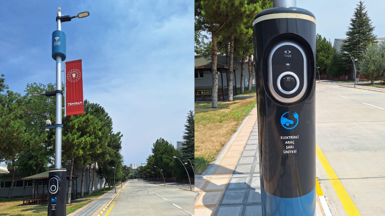 Geliştirilen akıllı aydınlatma direği, LED aydınlatma, elektrikli araç ve tekerlekli sandalye şarj üniteleri, USB cihaz şarj noktaları, kablosuz internet erişimi, dijital bilgilendirme ekranı ve güvenlik kameraları gibi birçok özellikle donatıldı.