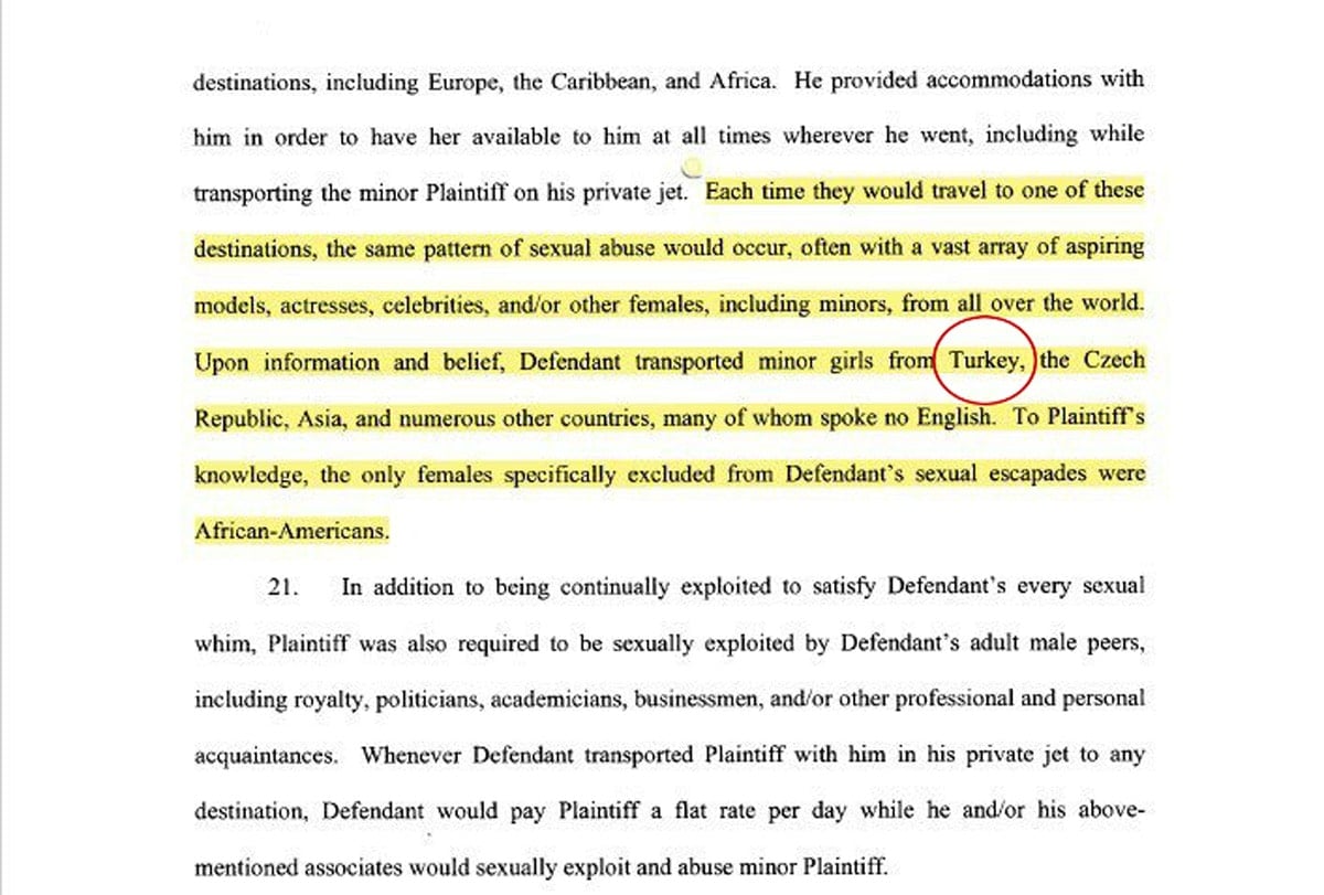 “Amerikan Adalet Bakanlığı, Epstein dosyasındaki bazı bilgi ve belgeleri açıkladı. Belgelerde Türkiye’den küçük kız çocuklarının istismar adasına götürüldüğü yazıyor. Çocukların İngilizce bilmedikleri için zorluk çektikleri de not edilmiş. Tek kelimeyle korkunç bir insanlık suçu.”