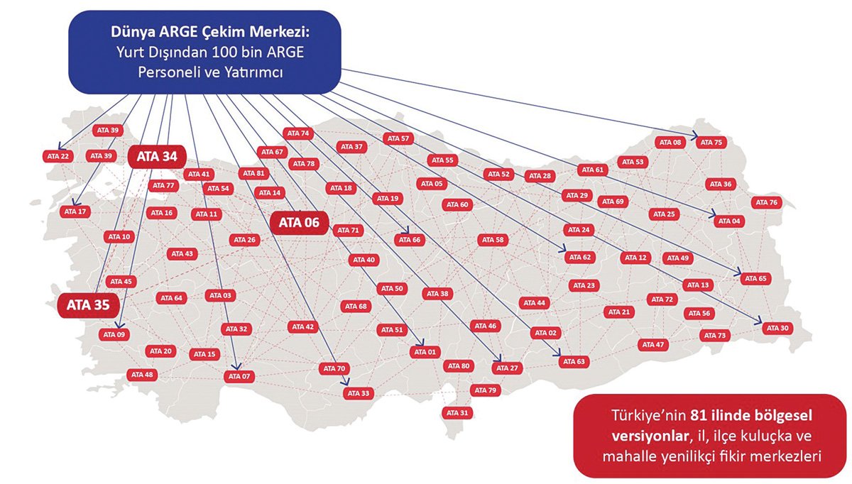 Türkiye’nin dünya teknoloji çekim merkezi olması amacıyla Prof. Dr. Muhammed Şahin’in ATA Projesi’yle 81 ilde yenilikçi fikirler kuluçka merkezi kurulması planlanıyor.