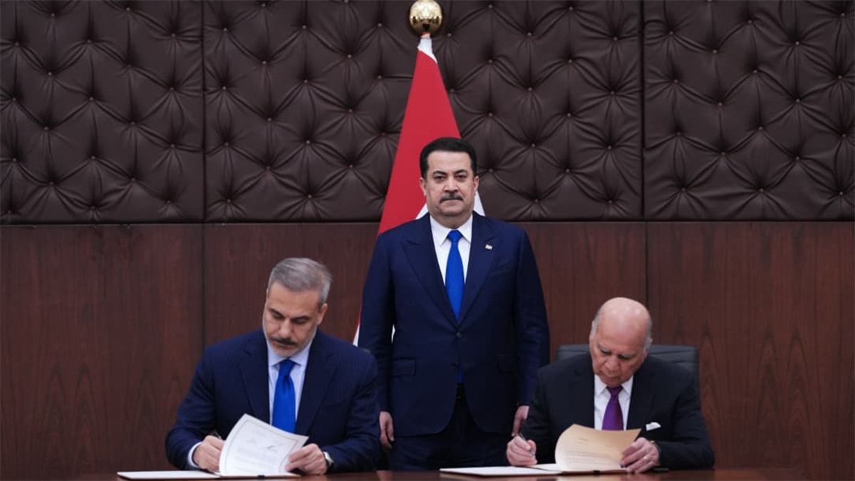 Dışişleri Bakanı Hakan Fidan, Irak’a yaptığı resmi ziyaret kapsamında, Irak Başbakanı Muhammed Şiya es-Sudani tarafından kabul edildi. Kabul sonrası, Bakan Fidan ile Irak Başbakan Yardımcısı ve Dışişleri Bakanı Hüseyin tarafından 'Türkiye Cumhuriyeti Hükümeti ile Irak Cumhuriyeti Hükümeti Arasında Su Alanında İşbirliğine İlişkin Çerçeve Anlaşması Kapsamındaki Projelerin Finansmanı için Mekanizma Belgesi' imzalandı.