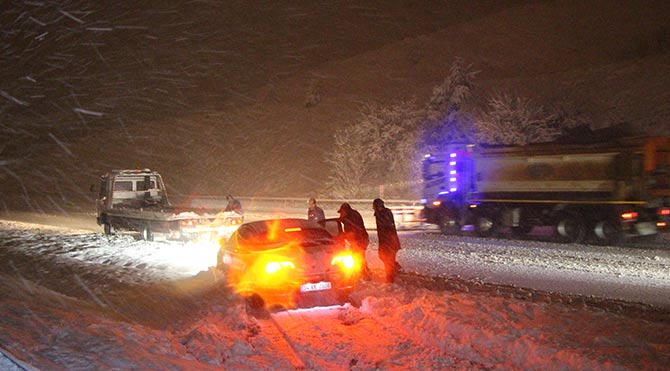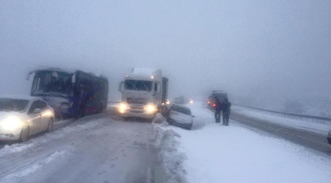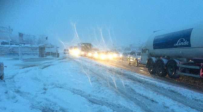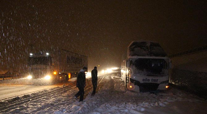 Dün Balıkesir, Manisa arasında bir TIR kaza yapınca İzmir-İstanbul karayolu çift taraflı trafiğe kapandı. Yolda ulaşım gece saat 23.00 sularında yeniden sağlandı. Ancak gece yarısı yol yeniden ulaşıma kapandı. Bölgede bekleyenler kilometrelerce araç kuyruğu oluşturdu.Bursa-Ankara ve Afyonkarahisar-Kütahya-Uşak karayolu da kar yağışı nedeniyle ulaşıma kapandı. Öte yandan Meteoroloji Genel Müdürlüğü, dün gece saatlerinden itibaren İstanbul, Tekirdağ, Kırklareli, Edirne ve Balıkesir'in kuzey ve batı çevrelerinde rüzgarın 100 km üzeri esmesinin beklendiğini açıkladı. İstanbul'da da kar yağışı gece saatlerinde etkili oldu. Özellikle Anadolu Yakası'nın yüksek kesimleri yoğun kar yağışı aldı.