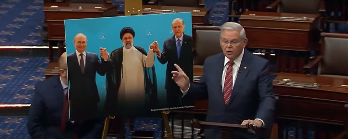 Konuşması sırasında Menendez, Erdoğan'ın Rusya Devlet Başkanı Vladimir Putin ve İran Cumhurbaşkanı İbrahim Reisi ile birlikte çekilmiş fotoğrafını da gösterdi. Menendez, "Erdoğan'ın ülkesindeki baskısının yanı sıra diplomasi politikası da tamamen korkunç. Fakat tek bir şey net o da ABD'nin Erdoğan'ın hamlelerini ciddiye alması gerektiği. Uluslararası yasaları çiğnediği zaman Erdoğan'ı sorumlu tutmalıyız" ifadesini kullandı.