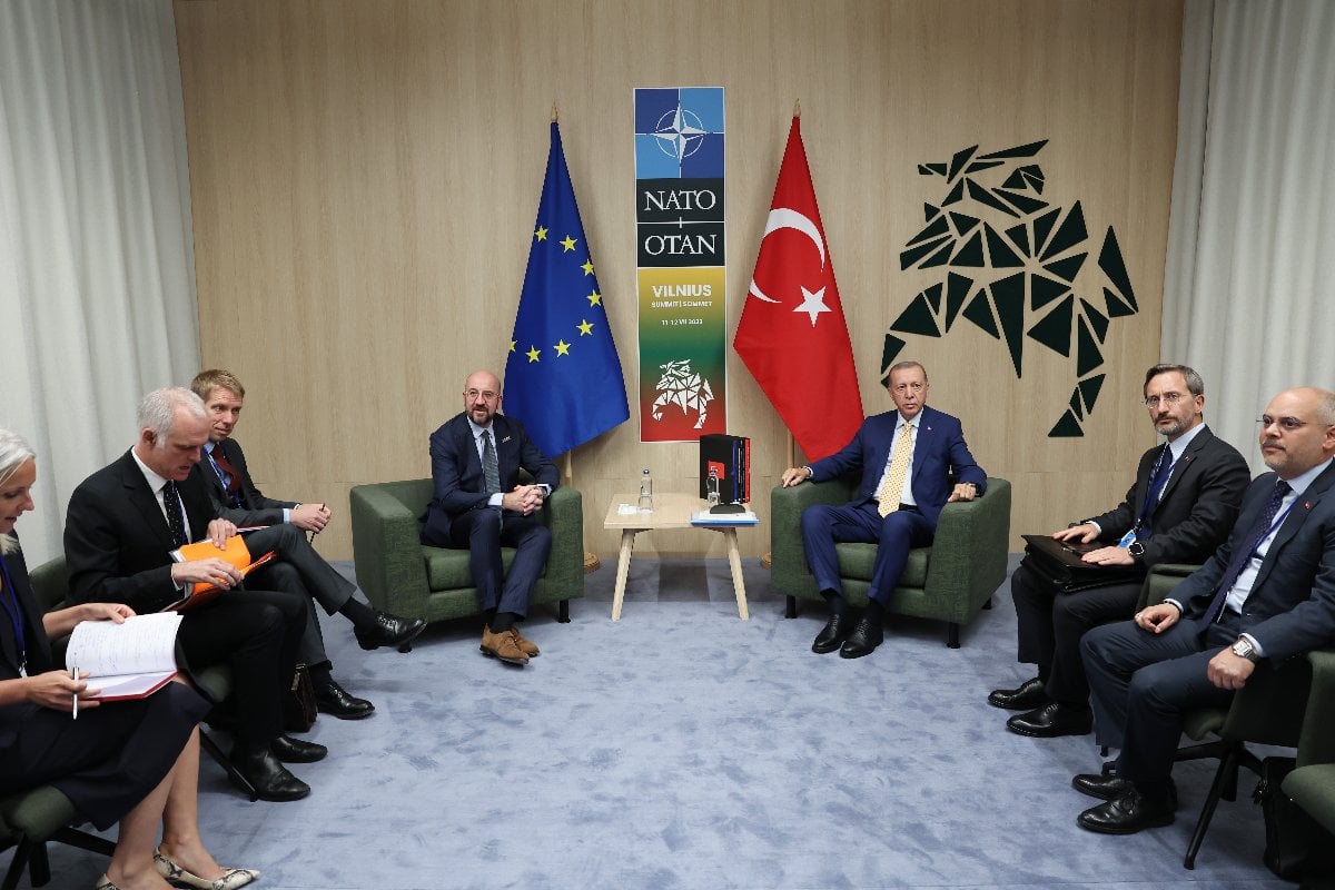 Charles Michel, Twitter hesabından, Litvanya'nın başkenti Vilnius'ta düzenlenen NATO Zirvesi öncesinde Cumhurbaşkanı Erdoğan ile yaptığı görüşmeye ilişkin açıklamada bulundu.