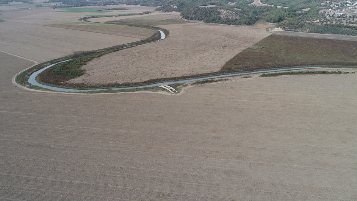 Köprü, kuraklık nedeniyle su seviyesinin düşmesiyle yeniden gün yüzüne çıktı. Çakıt Nehri’nin yatağının değişmesiyle nehir kenarında kalan köprü, dronla görüntülendi.