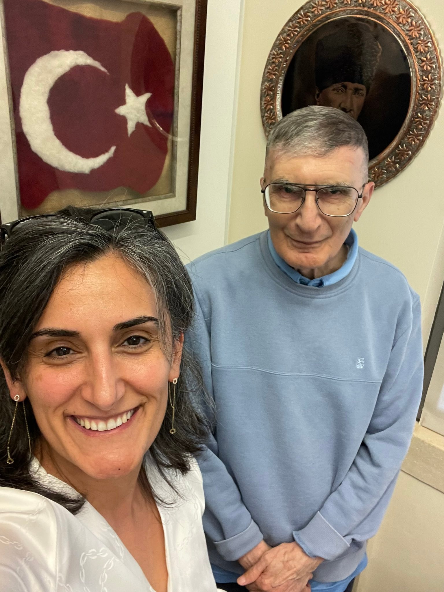 Ziyaretini sosyal medya hesabından paylaşan Dağdeviren, "Sayılan, kutsal, değerli; sevgide çok üstün tutulan, çok sevilen anlamına geliyor, Aziz. Bir insan, adının manasının hakkını ancak bu kadar verebilirdi. Aziz Hocam, aziz insan, aziz dost, canım hocam. Uzun zamandır hayal ettiğim bir ziyareti gerçekleştirebilmenin huzurunu yaşıyorum. Şu kısacık ömürde gönüller yapmaya geldik; sevmek ve sevilmek ne güzel şey. NC Chapel Hill'de 3 gün rüya gibi geçti, unutulmaz anılar biriktirdim. Kimsesizlerin kimsesi, Cumhuriyet'in eğitim verdiği bireyler olarak bilgimizi ve sevgimizi paylaştık, keyifli sohbetler yaptık. Sade Türk kahvelerimizi yudumladık Aziz Hocam ile. Rahatsızlığım nedeniyle Boston'a gelmek isteyecek kadar zarif ve yüce gönüllü, sabahın erken saatinde bizi havaalanından yolcu edecek kadar alçakgönüllü bir ruh. Cümlelerle anlatılamayacak kadar derin bir insan, Aziz Hocam. Durumun özü; kendimi Ata'sı ile buluşan Ülkü gibi hissettim. Sağ olsun, var olsun, aziz olsun, Aziz Hocam" dedi.