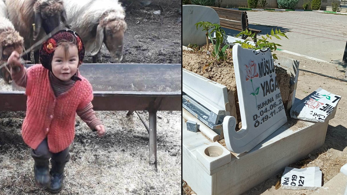 Mersin'in Gülnar ilçesinde 3 yıl önce ailesi çadır kurarken kaybolan, 10 gün sonra ise 7 kilometre uzaklıkta cesedi bulunan Müslüme Yağal'ın (3) mezarındaki mermer kaplamanın bir kısmı kırıldı. Tahribatın herhangi bir kişi ya da kişiler tarafından mı yoksa yapısal nedenlerden dolayı mı gerçekleştiğinin belirlenmesi için inceleme başlatıldı.