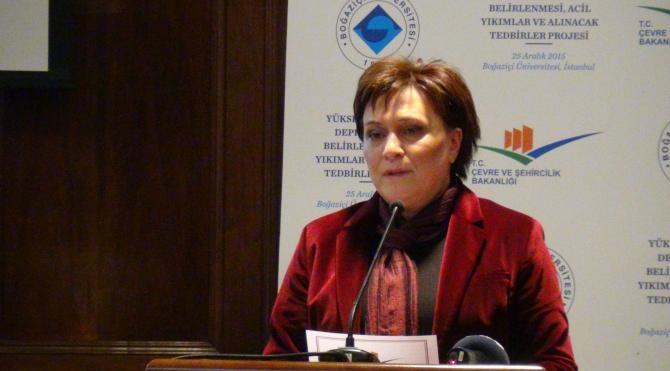 Çevre ve Şehircilik Bakanlığının Boğaziçi Üniversitesi ile ortak bir çalışma protokolü imzaladığının altını çizen Fatma Güldemet Sarı konuşmasında şu verileri paylaştı: `Afete hazır Türkiye düşüncesiyle başlayan kentsel dönüşüm hamlesiyle bugüne kadar 47 ilimizde 178 adet riskli alan ile 467 hektarlık Kentsel Yenileme Alanı ve 8.171 hektarlık Kentsel Dönüşüm ve Gelişim Proje Alanı ilan edilmiştir. Buna ek olarak 21 ilimizde 37.782 hektarlık 52 adet Rezerv Yapı Alanı belirlenmiştir. Ayrıca 265.684 konut ve 41.652 işyeri olmak üzere toplam 307.336 adet bağımsız bölüm içeren 91.213 adet binada riskli yapı tespiti yapılmıştır. Bu tespitler dahilinde de iş makinaları ile yapılan mekanik, yeni tekniklerin kullanıldığı teknolojik ve patlayıcılar ile yapılan patlatmalı yıkım konusunda ayrı bir uzmanlığa sahip Bakanlığımızca 33.412 adet riskli yapının yıkımı sağlanmıştır`. Olası bir afet sonrası hasar tespitlerinin doğru ve hızlı bir şekilde yapılmasını amaçladıklarını belirten Güldemet Sarı, konu ile ilgili teknik personelin Japonya ve ABD`de, araştırma ve inceleme faaliyetlerinde bulunduğunu ifade etti.