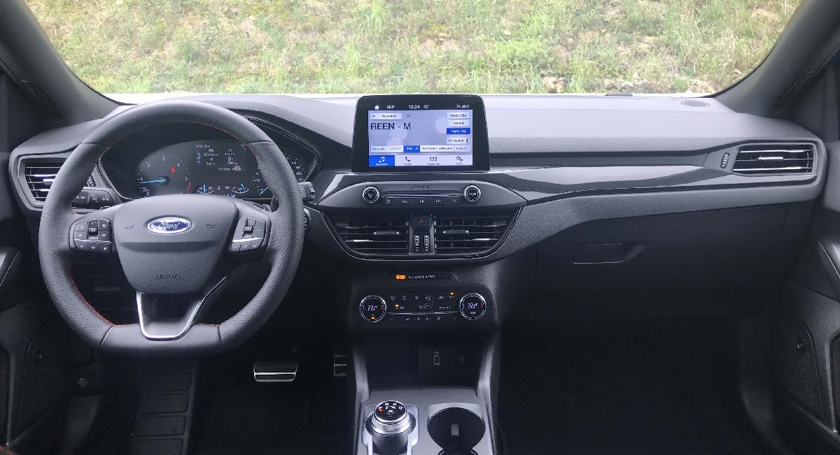 Sürücü kapısını açıp Focus'un içine geçtiğinizde ise öncelikle beklediğinizden daha alçak bir kabinde oturuyorsunuz. Sonrasında ise sizi aracın 8 inç boyutundaki, Bang&Olufsen imzalı ses sistemiyle kombine edilmiş multimedya ekranı karşılıyor. Ayrıca bu ekran SYNC yazılım sistemiyle donatılmış durumda.