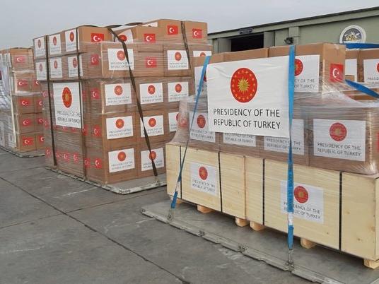 Bu arada yardım kolilerinin üstünde Mevlana'nın "Ümitsizliğin ardında nice ümitler var... Karanlığın ardında nice güneşler var..." sözleriyle, her iki ülkeye mesaj gönderilirken, kolilerde Türkiye Cumhuriyeti değil, Türkiye Cumhuriyeti Cumhurbaşkanlığı yazdığı görüldü.
