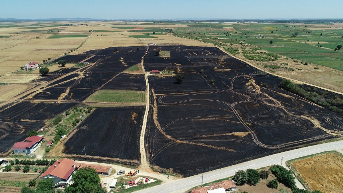 Edirne28 HAZİRAN: Tekirdağ'ın Malkara ilçesinde hasadı beklenen buğday tarlasında yangın çıktı. Alevler rüzgarın etkisiyle hızla yayıldı. İhbar üzerine bölgeye sevk edilen itfaiye ekipleri yangını söndürdü. 50 dönüm buğday ekili alan yok oldu.