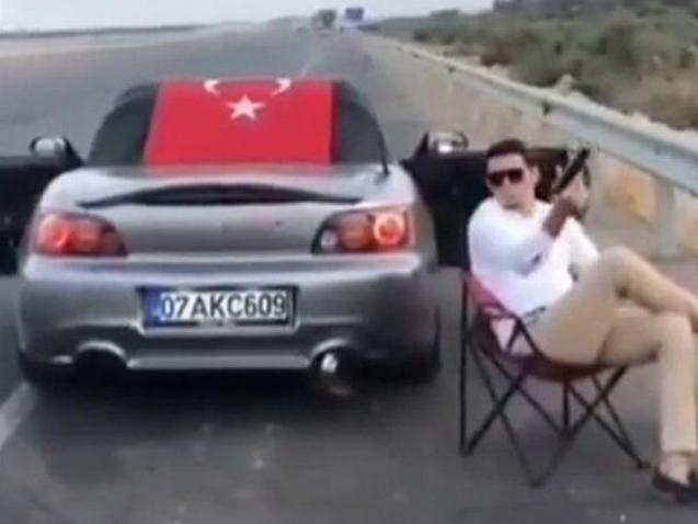 Park ettiği otomobilin yanına koyduğu portatif sandalyeye oturduğu görülen H.U., bu sırada belinden tabancasını çıkartıp, aracının açılı tavanı kapanırken, art arda altı kez havaya ateş etti. Aracın tavanı kapanırken Türk bayrağının da tavana asılı olduğu görüldü.