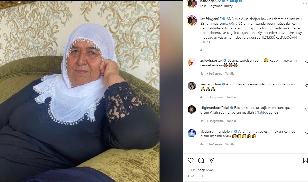 Türkücü Latif Doğan sosyal medya hesabından yaptığı paylaşımla annesini kaybettiğini açıkladı.