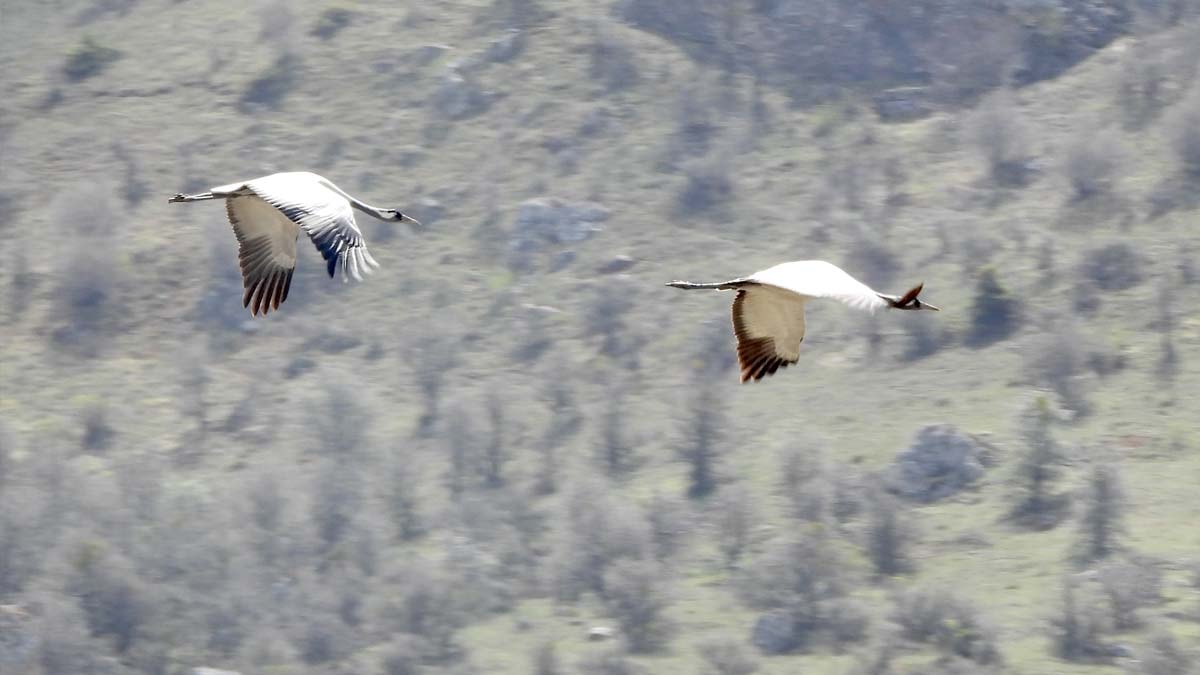 Türkülere konu olan ve Anadolu'nun önemli türleri arasında yer alan turna kuşları, bu yıl da Şebinkarahisar'a geldi.