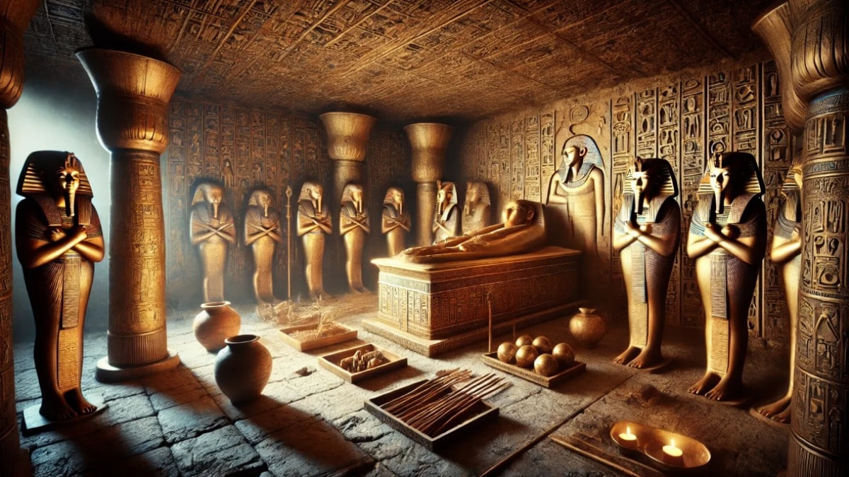 Tutankhamun, M.Ö. 1332’de tahta çıkmış ve yaklaşık 10 yıl hüküm sürdükten sonra 18 ya da 19 yaşlarında ölmüştü. Kısa süren saltanatına rağmen, 1922’de mezarının keşfiyle birlikte en ünlü Mısır firavunlarından biri haline geldi. Mezarda bulunan altın maskesi, altın ayakkabıları, takıları ve heykelleri gibi eşyalar büyük ilgi görmüş, ancak kil tepsiler ve dört adet 90 cm uzunluğundaki ahşap değnek, bu gösterişli nesnelerin gölgesinde kalmıştı.