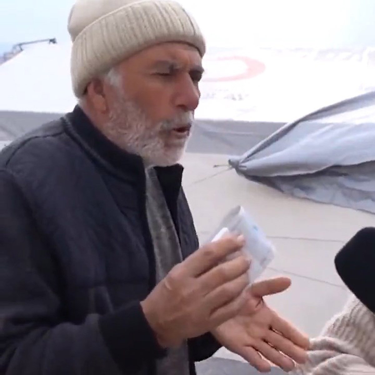 Deprem felaketinde her şeyini kaybeden vatandaşlar, 10 bin lira desteğe hem içerledi, hem de tepki gösterdi.Kahramanmaraş’ın Pazarcık ilçesinde elindeki parayı göstererek konuşan vatandaş, Erdoğan’a şöyle seslendi: “10 bin lira bana verdi. Bunu Erdoğan’a versem ne yapacak? Geri kendisine iade edeyim. 10 bin lira verdi, bir çay parasıdır. Ben ne yapacağım bu 10 bin lirayla? Benim iki torunum öldü. Evim yerle bir oldu. Hani devlet büyüktü, dünya lideriydi, nerede? Bana bir çadır vermeyle sorun hallediliyor mu? Tuvalet yok, banyo yok, su yok, elektrik yok… Nerede devlet? Açık açık söylüyorum. Diyarbakır, Urfa o yardımlar hep oralardan geldi. Devlet buraya bir ekmek, bir somun vermedi. Koskoca devlet bir köye bir aşevi yapmaz mı? 2-3 gün yemek verse. İşte yapamadı, eline yüzüne bulaştırdı. İsterseler beni idam etsinler!”