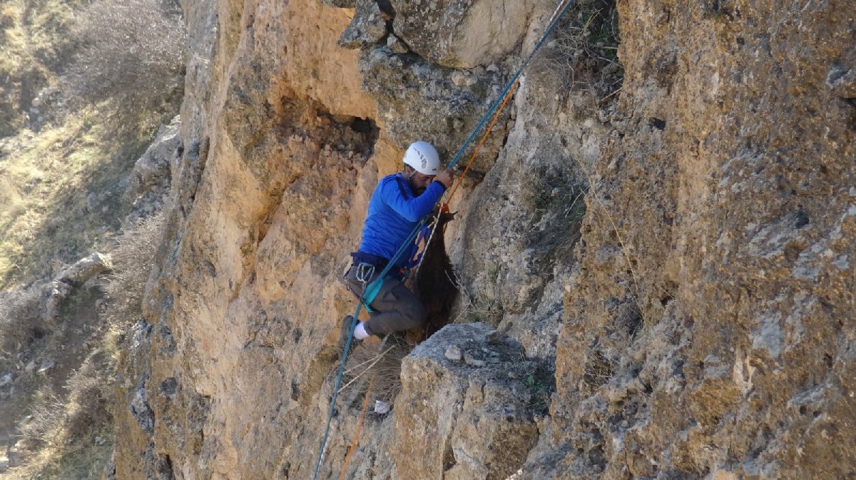 Günlerce kendi imkanlarıyla keçisini kurtarmaya çalışan Aslan, sonuç alamayınca arkadaşı olan beden eğitimi öğretmeni ve dağcı Yalçın Yıldız’a ve köy muhtarı İrfan Aydın’a haber verdi.