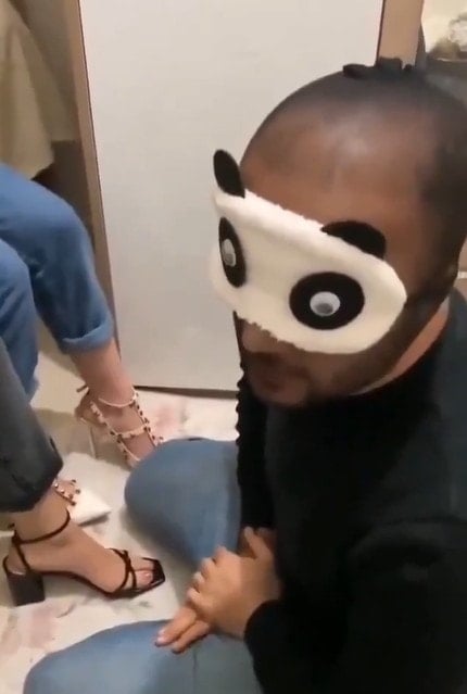 Kaydedilen videoda kadınlar yüzünü göstermezken, erkeğin ise kafasına külotlu çorap ve gözlerine de uyku bandı taktıkları görüldü.