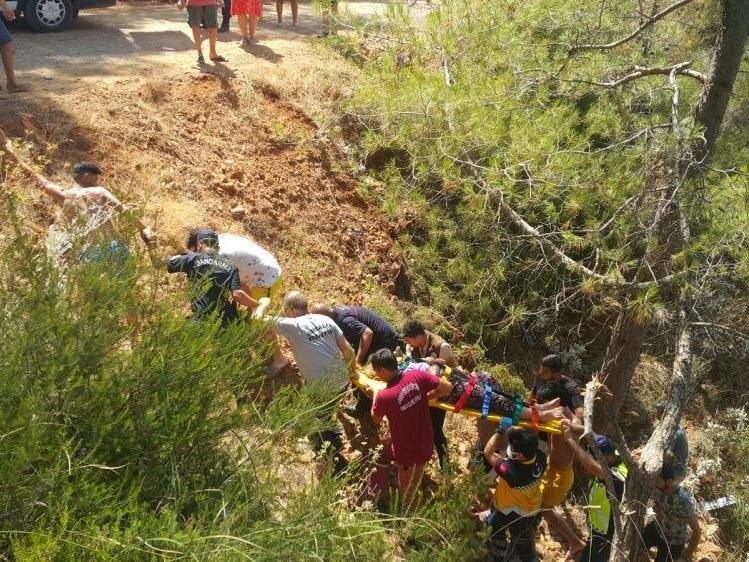 Antalya'da karşıdan gelen araca yol vermek isteyen otomobil uçuruma yuvarlandı. Yaklaşık 50 metrelik uçuruma yuvarlanan araçtaki 4 yaralı, vatandaşların oluşturduğu insan zinciriyle yukarı çıkartıldı.