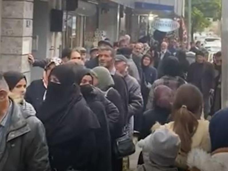 Market çalışanları ucuz şeker alabilmek için metrelerce uzun kuyruk oluşturan vatandaşları kontrol edebilmek için sık sık düzgün sıra yapmaları konusunda uyardı.