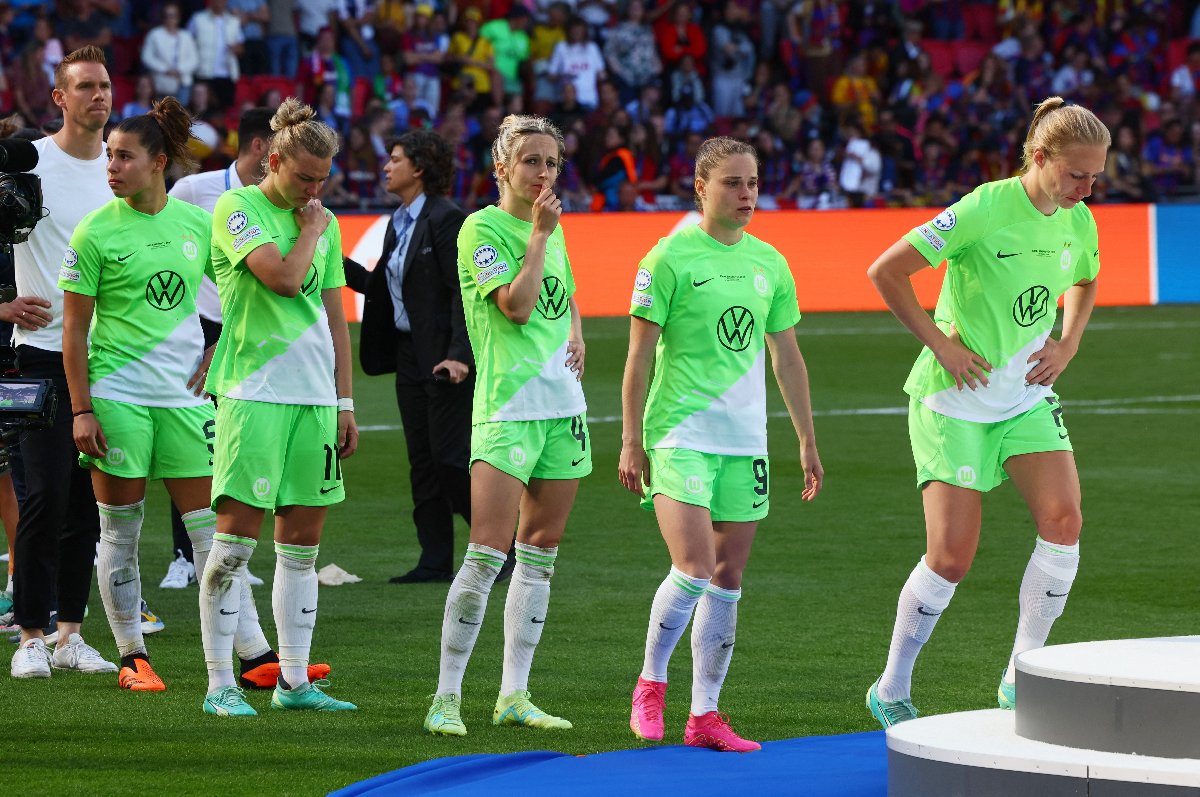 Wolfsburg oyuncuları madalya töreninde. Fotoğraf: Reuters.UEFA Kadınlar Şampiyonlar Ligi: Barcelona, Wolfsburg'u 3-2 yenerek ikinci kez şampiyon oldu