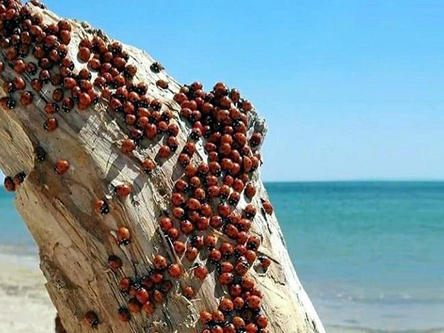 Enez ilçesinde Altınkum sahilindeki sitede tatilini geçiren Seher Dıramalı, uğur böceklerinin bulut halinde geldiklerini belirterek şöyle konuştu: