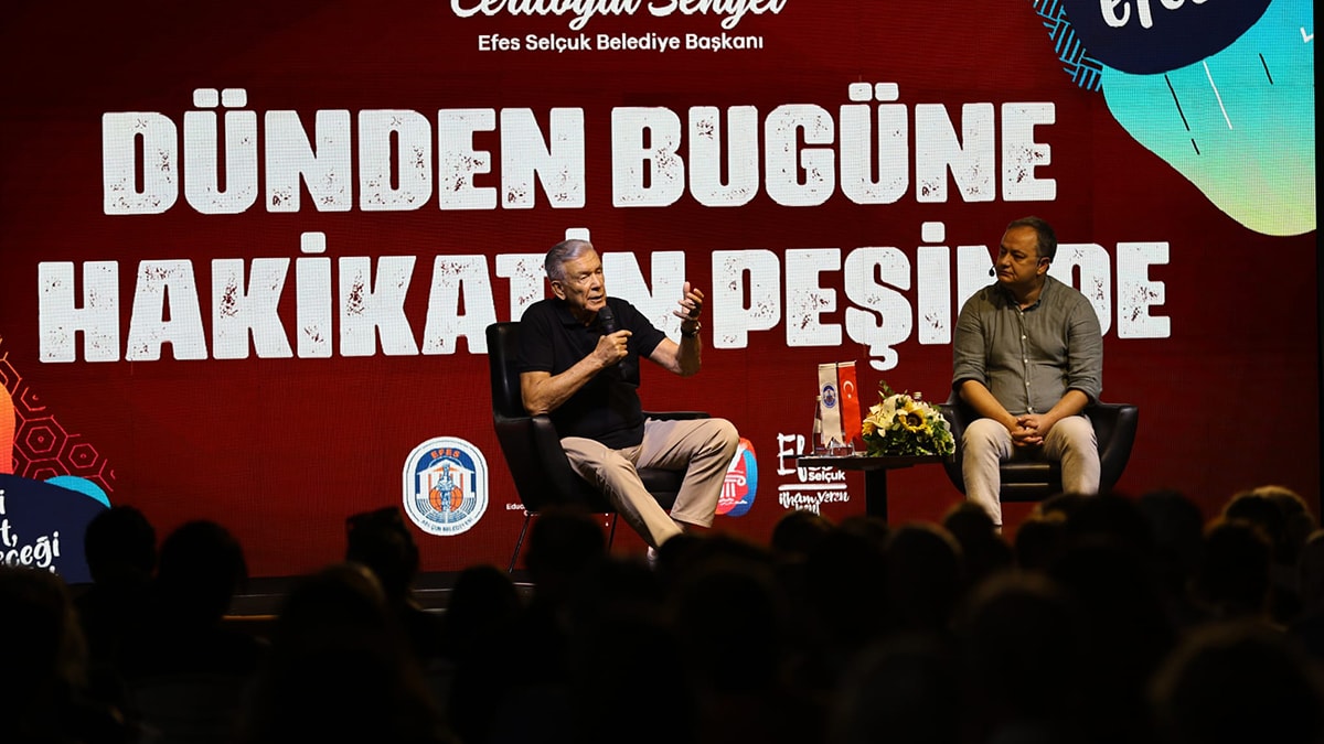 Söyleşiye, Türkiye’nin geleceği üzerine değerlendirmeleriyle başlayan usta Gazeteci Gökmen Ulu, birçok yurttaşın endişelerini paylaştığını belirterek; “Türkiye Cumhuriyeti tarihinin en kara dönemlerinden birini yaşıyoruz. Ama böylesine pırıl pırıl, aydınlık ve nitelikli bir topluluğun karşısında bulunmaktan kıvanç duyuyorum. Bu efeler diyarında sadece zeybek oynarken diz çöken, dik duruşlu, başarılı bir başkan gördüğümüz için geldik. Filiz Ceritoğlu Sengel’i kutluyoruz. Türkiye Cumhuriyeti ağır bir saldırı altında. Cumhuriyetin kolonlarına vuruyorlar, demokrasimizi hırpalıyorlar. Peki, ne yapmalı? Direnmeli!” dedi.