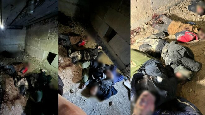 İşkence odası olduğu belirtilen bodrumda, yerde yatan ölülere ait fotoğrafalar da paylaşıldı. Fotoğraflarda yerdeki kan lekeleri dikkat çekti. Uluslararası basın, fotoğrafların bağımsız kaynaklar tarafından doğrulanamadığına dikkat çekti.