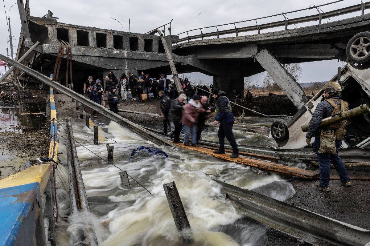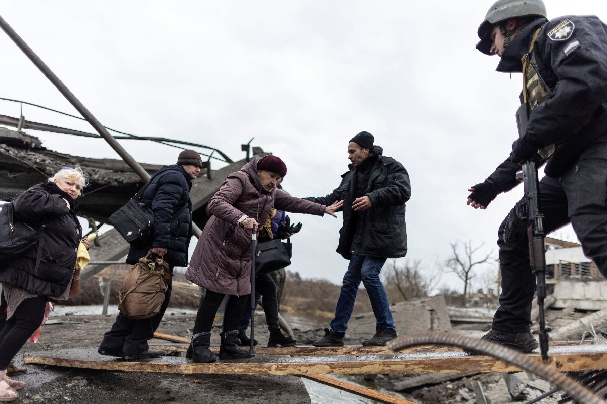 Çok sayıda çocuk ve yaşlının da bulunduğu siviller, patlama bölgesinden kaçmak için evlerini terk ederek yanlarına aldıkları birkaç eşya ile Kiev’e geçmeye çabalıyor.Belediye başkanına göre Pazar günü, iki havan veya top mermisi banliyödeki bir kontrol noktasına isabet etti ve iki çocuklu bir aileyi ve Rus işgalinden kaçmaya çalışan diğer birkaç sivili öldürdü.