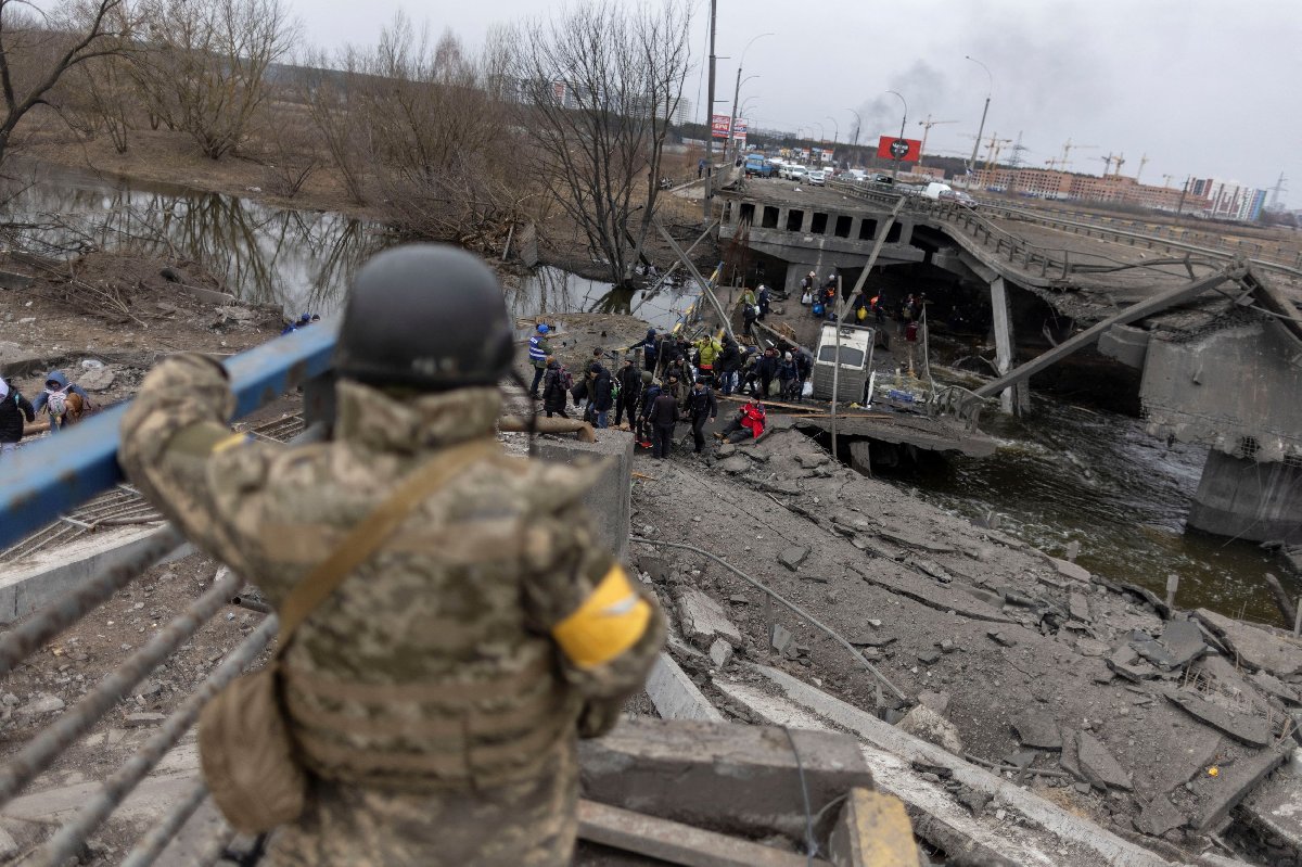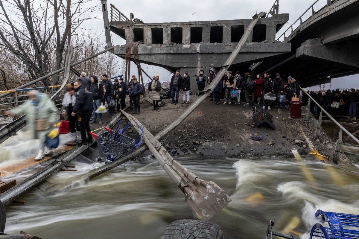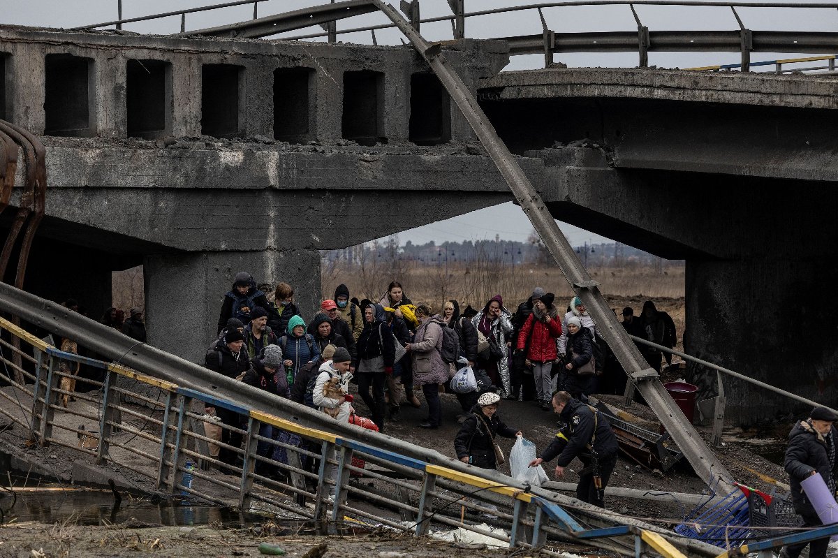 Şiddetli çatışmaların yaşandığı ve hasar gören bir köprünün altına sığınan sivillerin görüntüsüyle basına yansıyan Irpin'de, 200'ü çocuk yaklaşık 2 bin kişi Ukrayna Polisi tarafından tahliye edildi.