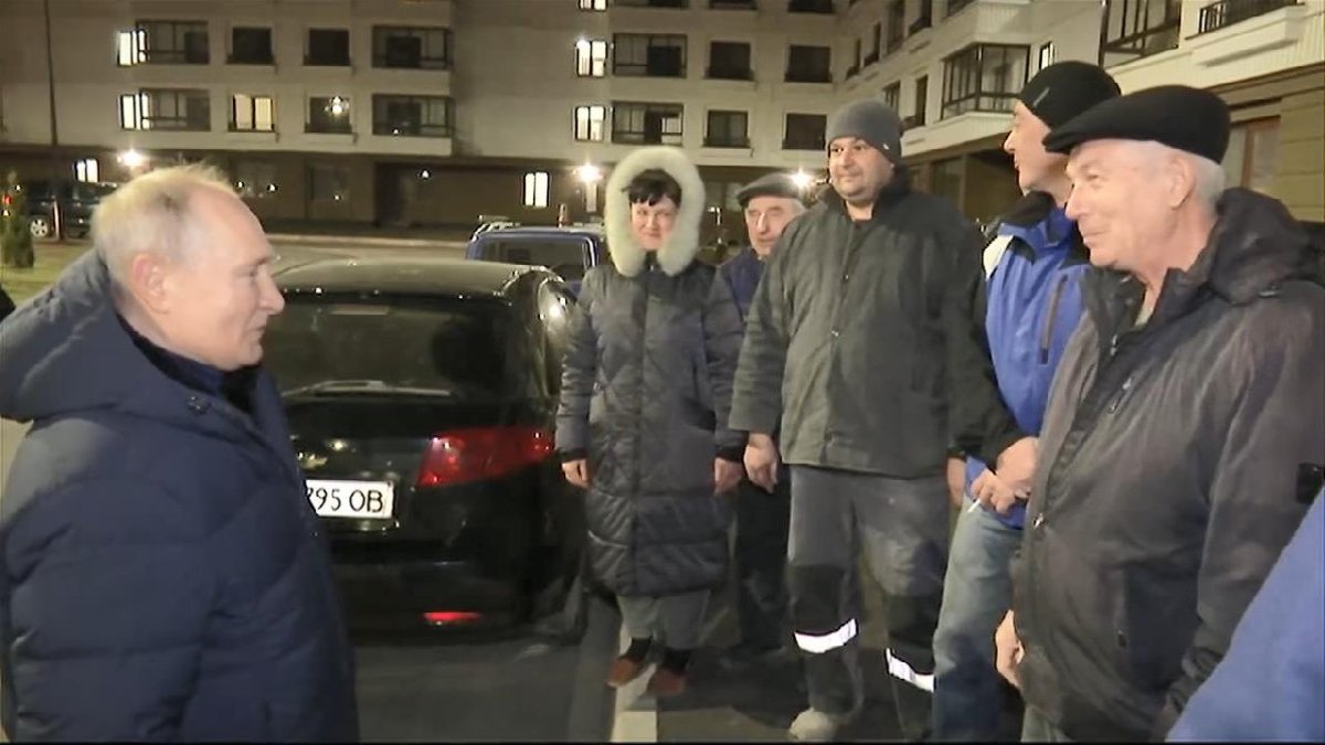 Kremlinden yapılan açıklamada, "Vladimir Putin helikopterle Mariupol'a geldi. Şehrin çeşitli semtlerini gezdi, sahil şeridindeki yat kulübü, tiyatro binası, tarihi yerleri inceledi. Putin, Nevsky bölgesinde yerel sakinlerle konuştu. Ailelerden birinin daveti üzerine evlerine gitti" denildi.